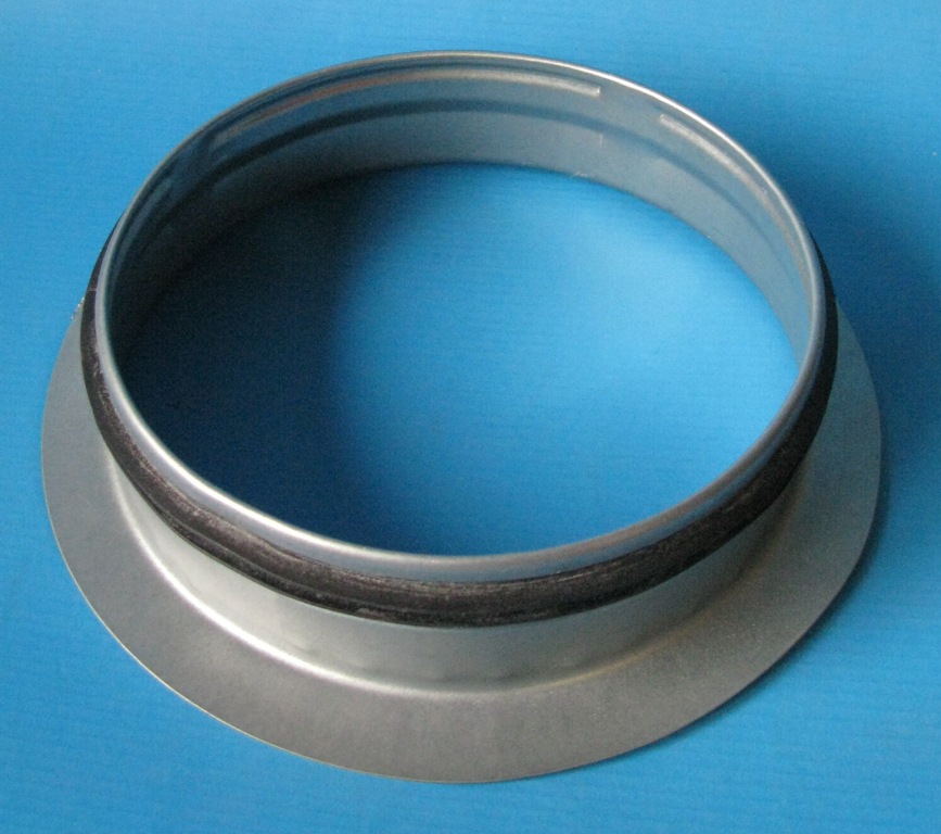 Bundkragen zum Anschluss der Wickelfalzrohre und Lüftunfsrohre an ein Lüftungskanal bzw. an einer Decke oder einer Wand, DN 125 mit Lippendichtung.